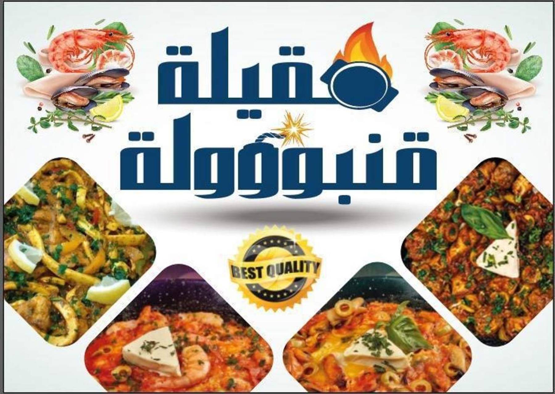 Mqila QanboulaBoule de crabe, requin, crevette, bouzroug,surimi sauce tomate, œuf, fromage,50,00 MADMqila Qanboula