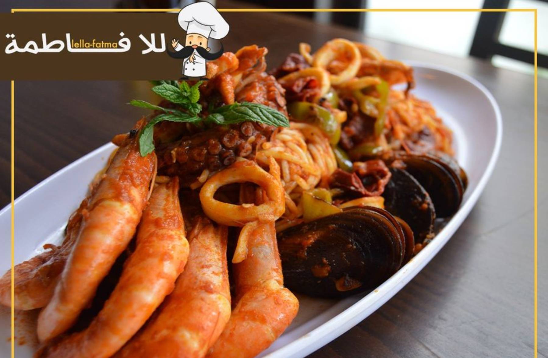 Fruits de Mer Lella FatmaFruit de mer sautée, crevette panée, sauce fruit de mer