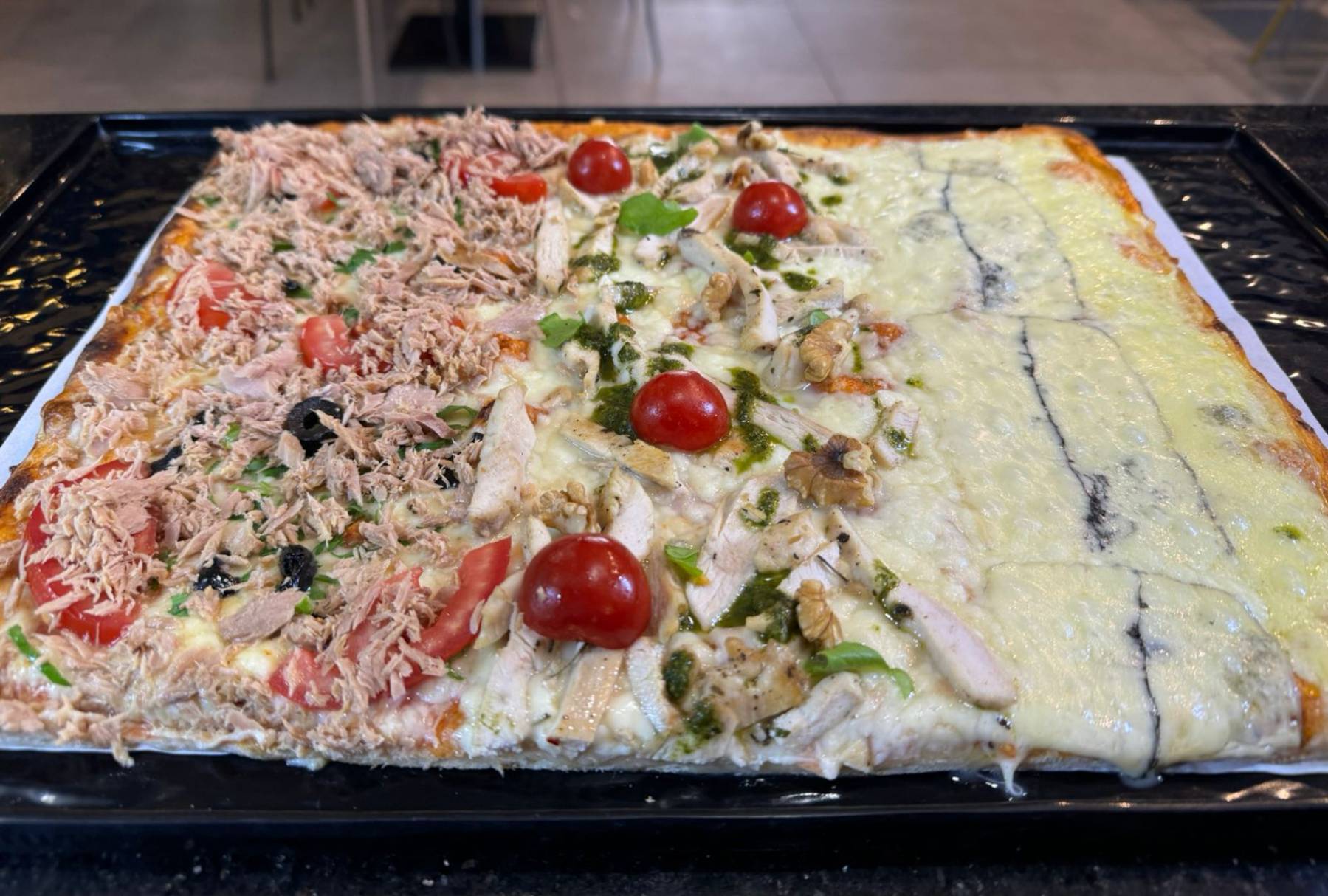 Thon, sauce tomate, mozzarella