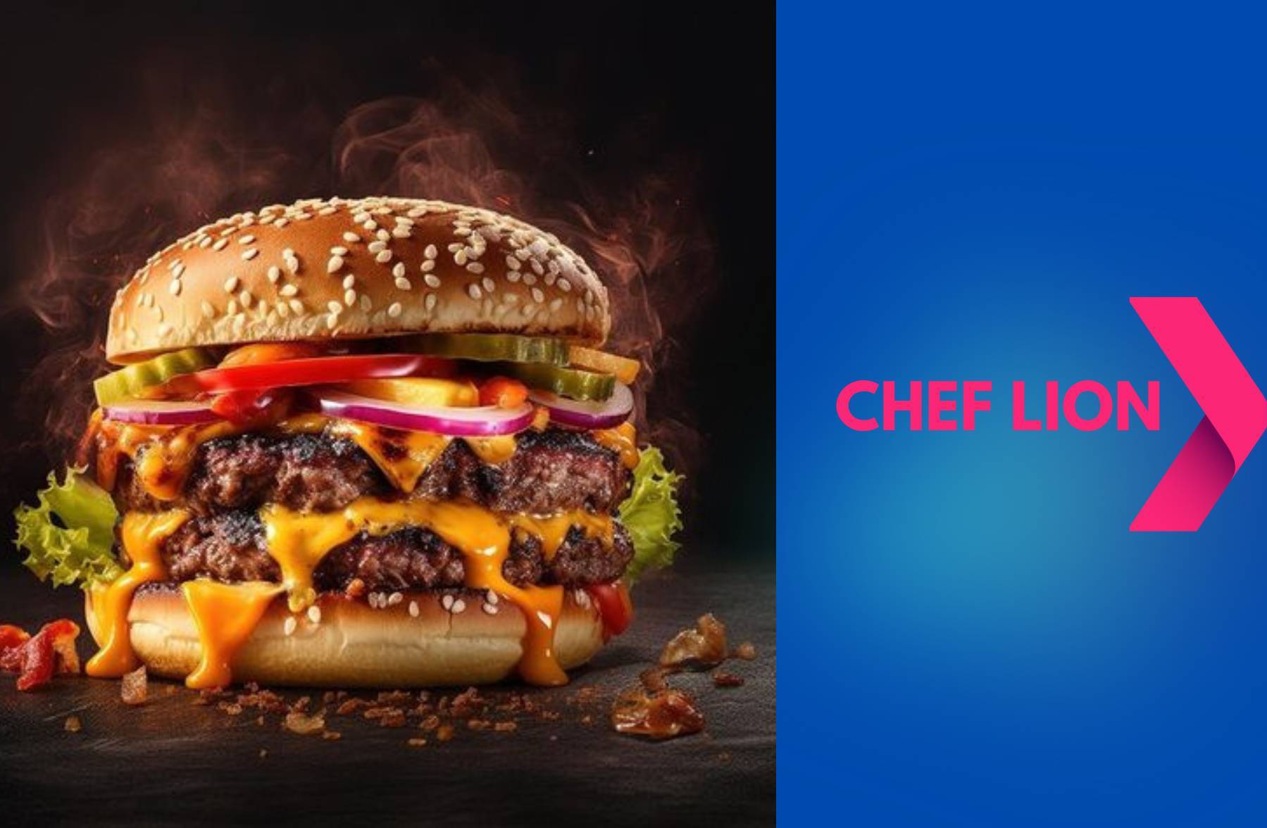 Cheese BurgerPain artisanal, Double Steak 100 % pur bœuf 2x100 gr, Double Cheddar, Cornichons rondelles, Oignons grillés, Sauce Burger, Ketchup, Purée de piment à la demande.