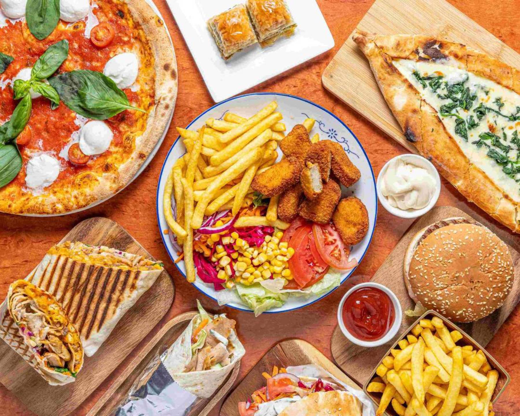 🍔 Burger, 🍕Pizza, 🥪 Sandwich, 🌮 Tacos, 🍗 Poulet