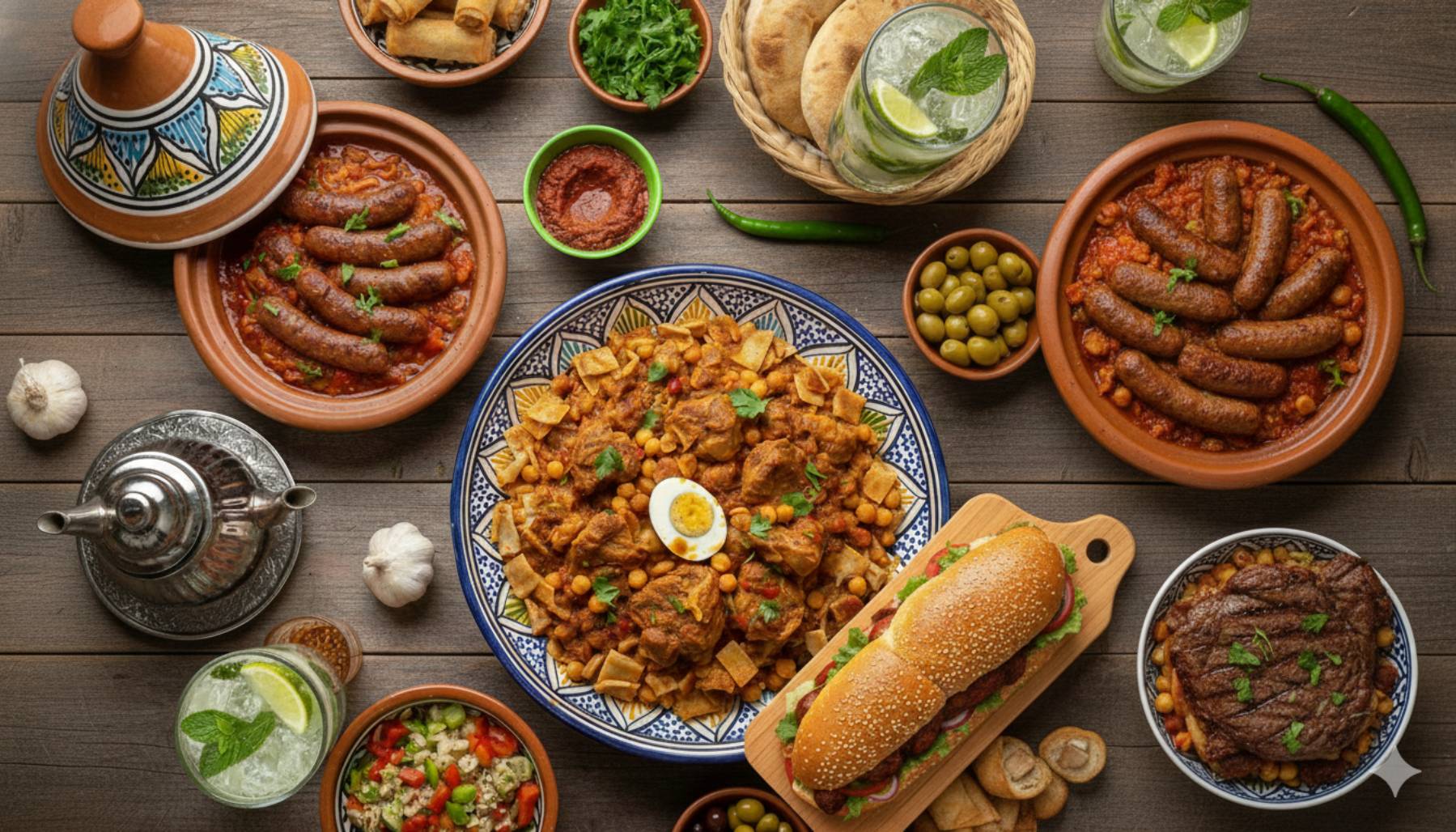 Sandwichs, Tacos, Plats, Cuisine Algérienne, Boissons natures