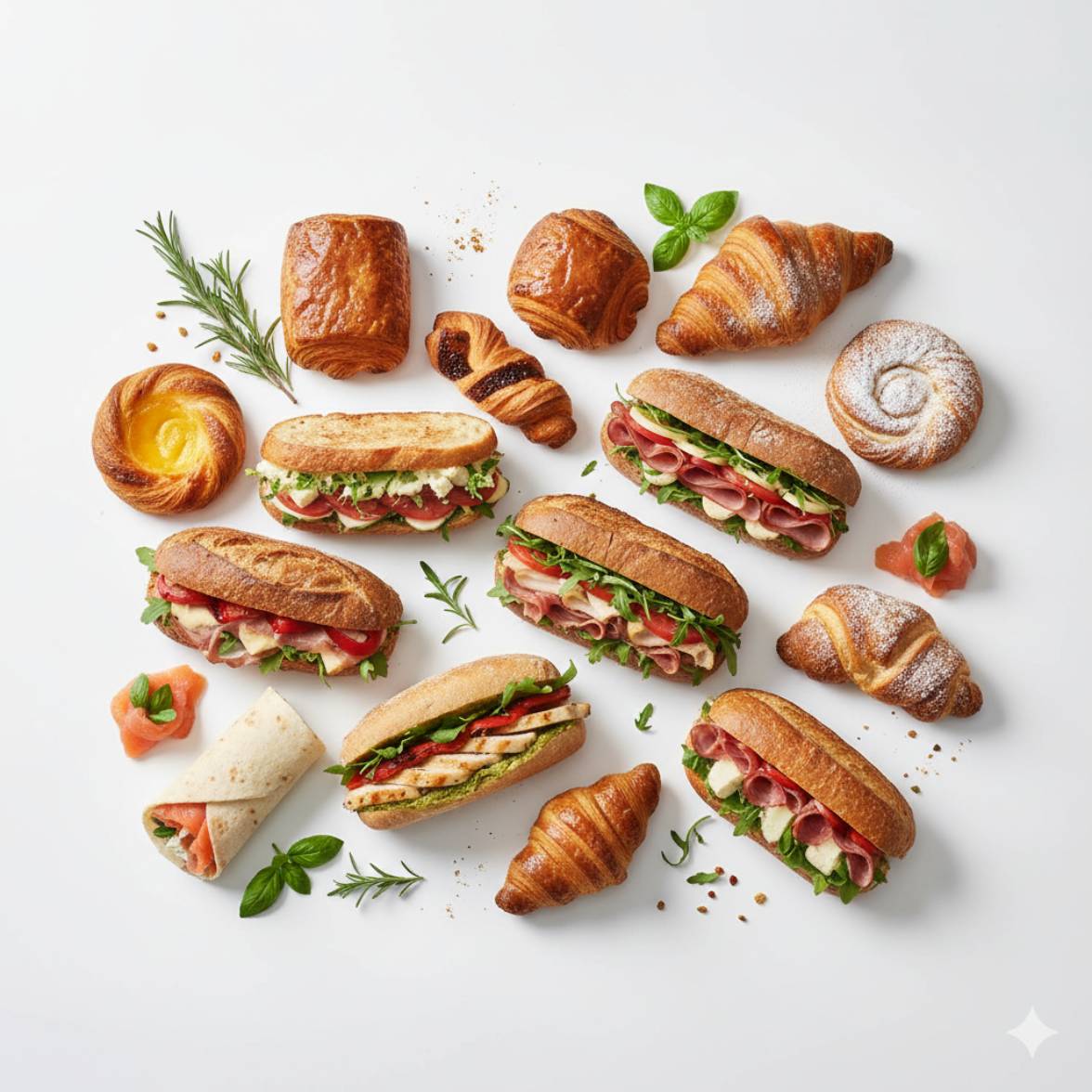 Sandwichs, Pains & Viennoiseries, Salades, Boissons natures