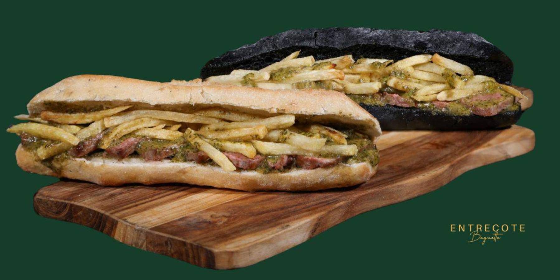 La Baguette in Black en XLPain au charbon végétal 160 gr de contre filet de boeuf Sauce emblématique Frites149,00 MADLa Baguette in Black en XL