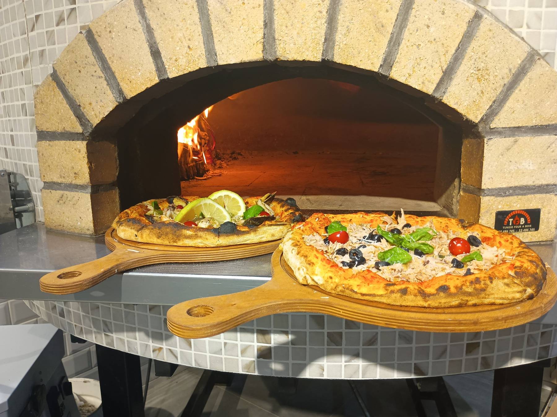 Pizza PerfezioneSauce tomate & blanche, mozzarella, champignons, cerise, basilic, huile d’olive
