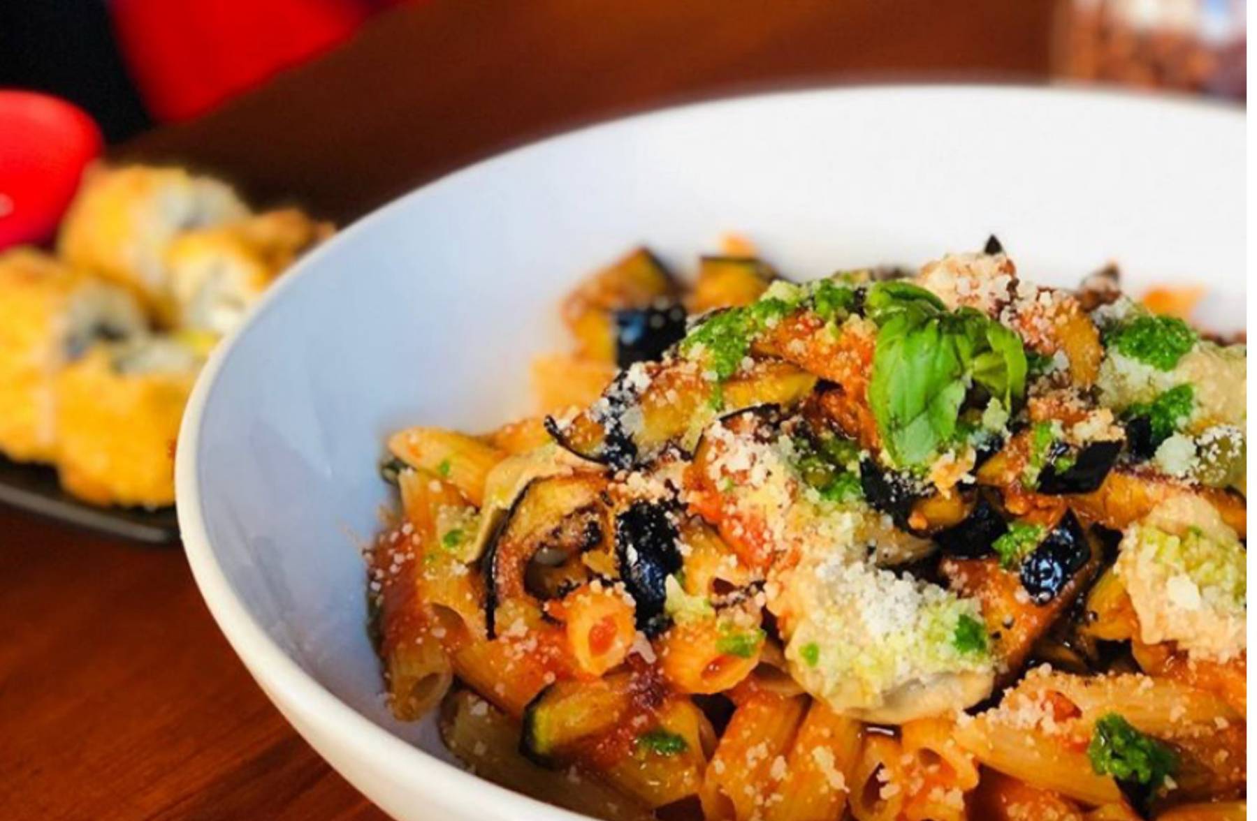 Penne au Poulet PanéA la crème, parmesan, basilic, huile de persil