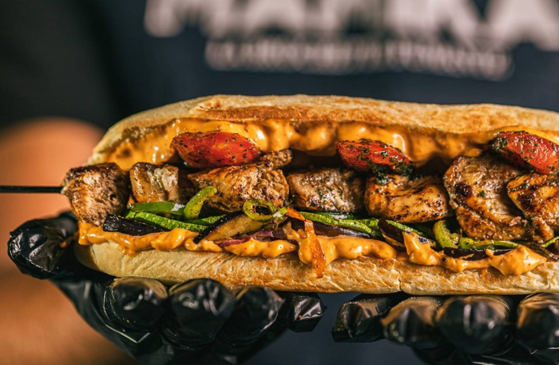 Pain au choix, sauces au choix, légumes au choix, frite.