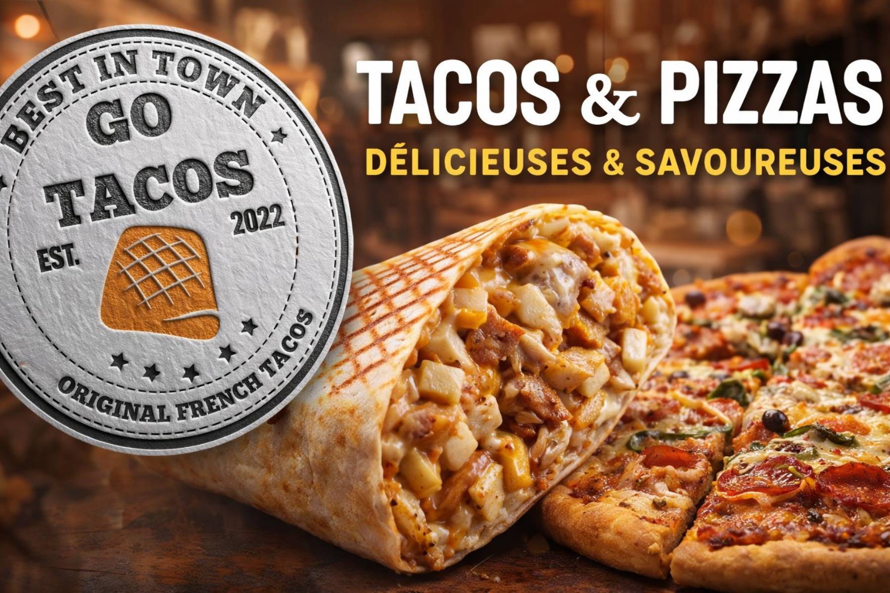 Pizza, Tacos, Burgers