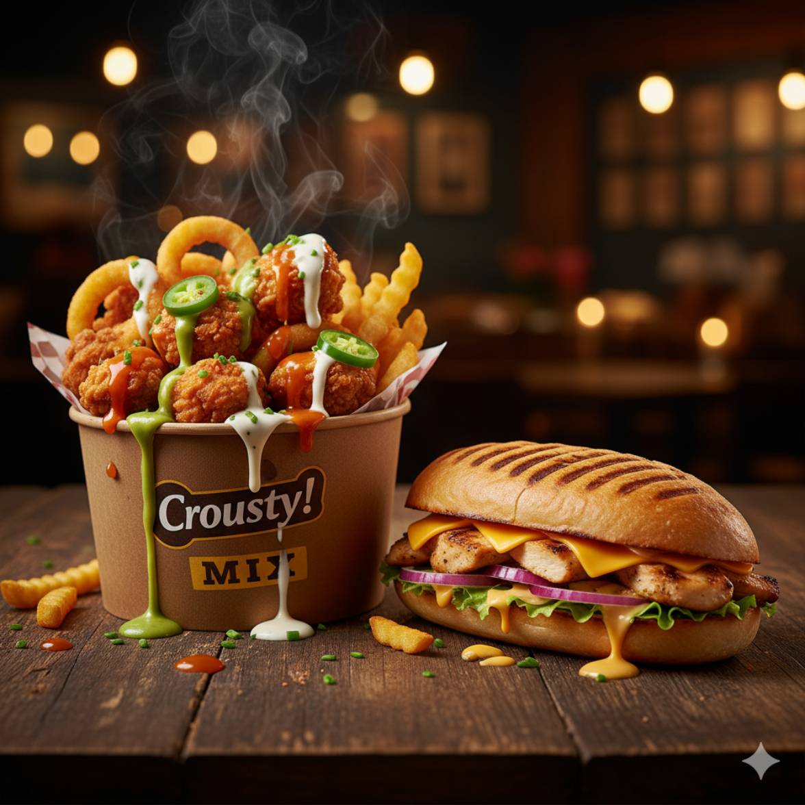 Sandwichs, Boissons natures, Fried chicken