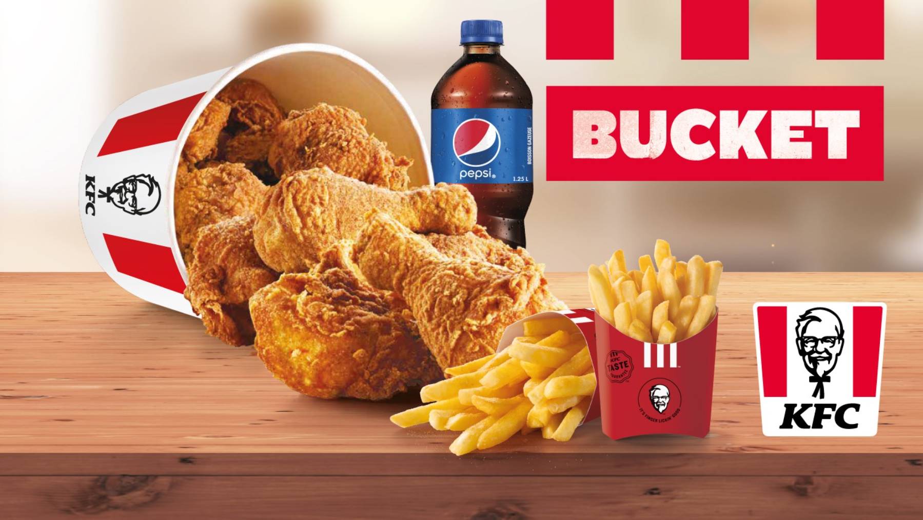 Menu Bucket 2115 Pièces de poulet + 2 Portions de frites + 1 Grande Boisson