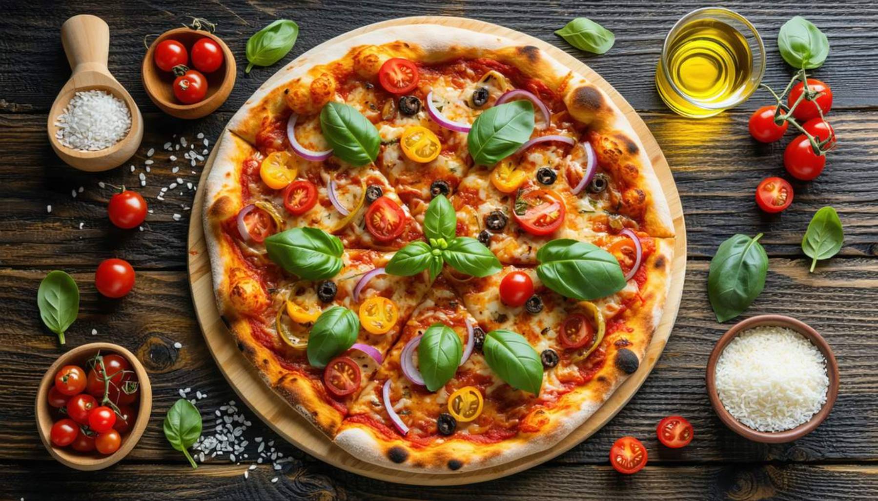 Pizza végétarienSauce tomates. mozzarella. champignon. Aubergine. courgette. Oignons. Poivrons.roquette.tomate cerise.pesto sauce46,00 MADPizza végétarien